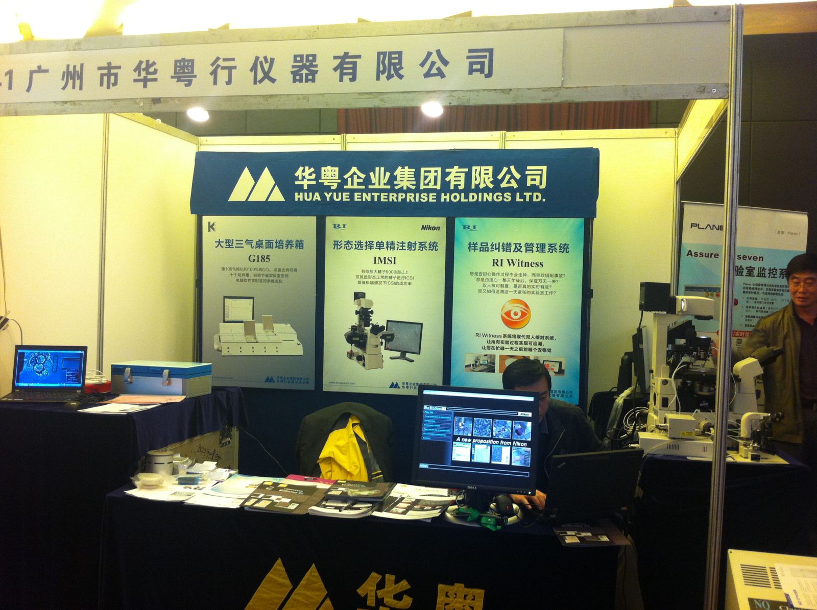在此次會議上(shàng),我公司展出了德國(guó)LABOTECT的C-TOP桌(zhuō)麵培養箱、日本NIKON的倒置顯微鏡、顯微操作儀及活細(xì)胞實時觀察係統BiosesTATION-CT、美國(guó)NQ公司的室內空(kōng)氣過濾裝置、英國RI公司的WITNESS樣品糾錯係統及新一代激光破膜儀等產品。